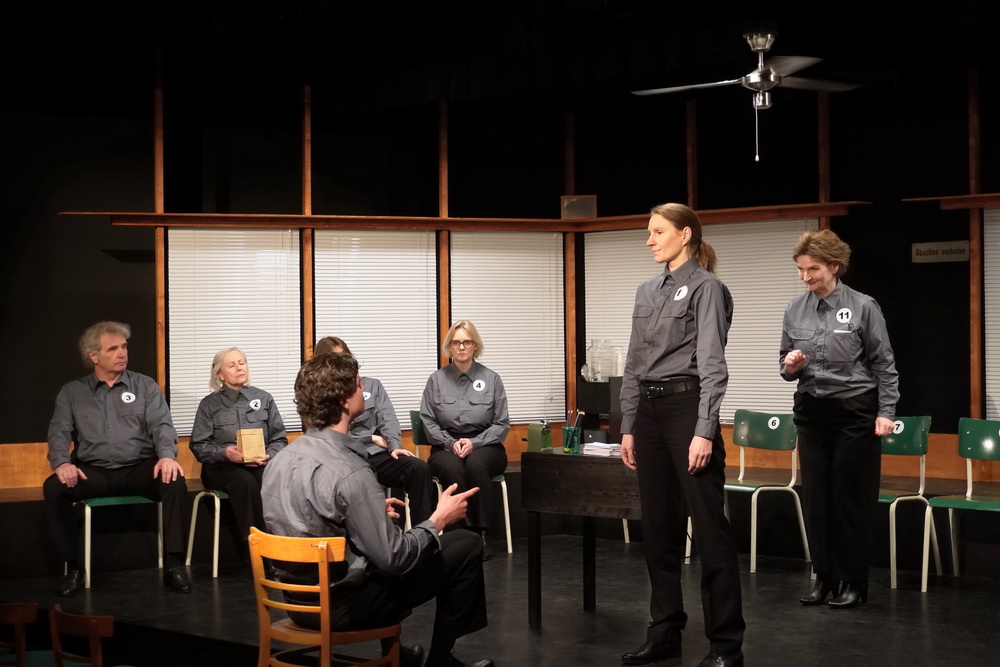 Stehende Hitze, ein brummender Ventilator und zwölf Geschworene, die über Leben und Tod entscheiden müssen. Der zeitlose Klassiker von Reginald Rose ist ein intensives Kammerspiel, ein Aufeinandertreffen unterschiedlicher Sichtweisen und Lebensrealitäten.